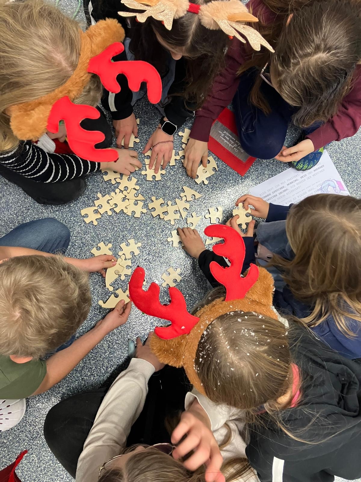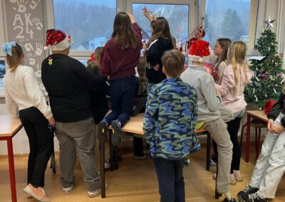 Der Grinch ließ ein paar rätselhafte Hinweise zurück – und seine „Lieblingskugel“. Darauf sollten wir alle die verlorenen Herzen sammeln, die für wichtige Werte im Schulalltag stehen. An verschiedenen Stationen mussten wir dafür Rätsel lösen, zerbrochene Herzen wieder zusammensetzen und über Themen sprechen, die uns immer wieder begegnen: Mobbing, Neid, Respekt, Ehrlichkeit und ein guter Umgang miteinander. Ab und zu erschreckte uns der Grinch im Schulhaus – aber das fanden wir alle ziemlich lustig. Auch die Fotostation mit ihm war richtig schön.