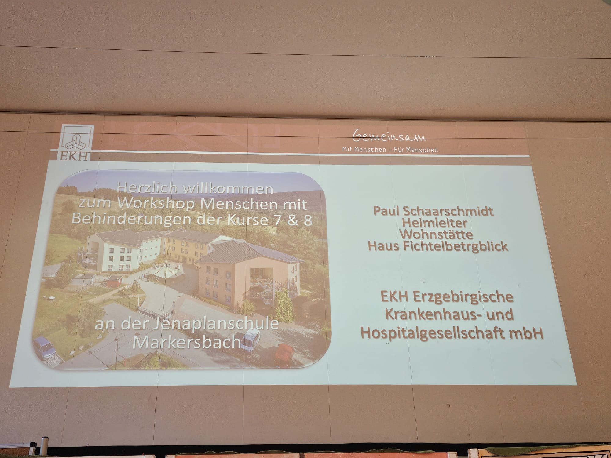 Am 18.03.2026 ging es weiter und die nächsten Projektgruppen waren zu diesem Thema unterwegs. Eine Gruppe konnte bei einem Vortag mit Herrn Schaarschmidt vom EKH Erzgebirgische Krankenhaus- und Hospitalgesellschaft mbH viel über den Umgang mit Menschen mit einer Behinderung lernen. Die zweite Gruppe war zu einer Exkursion im AGAPLESION BETHANIEN Haus Scheibenberg, um sich direkt mit den Bewohnerinnen und Bewohnern auszutauschen und gemeinsam Zeit zu verbringen. Vielen Dank an alle Unterstützer vor Ort, dass uns diese Begegnungen ermöglicht wurden.